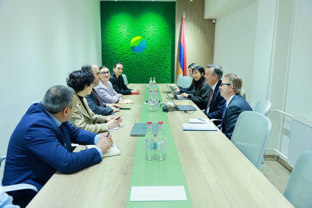 Հանդիպմանը մասնակցել են նաև Բնապահպանական ծրագրերի իրականացման գրասենյակի տնօրենի ժամանակավոր պաշտոնակատար Արմեն Եսոյանը և նախարարության համապատասխան ոլորտի ներկայացուցիչներ։