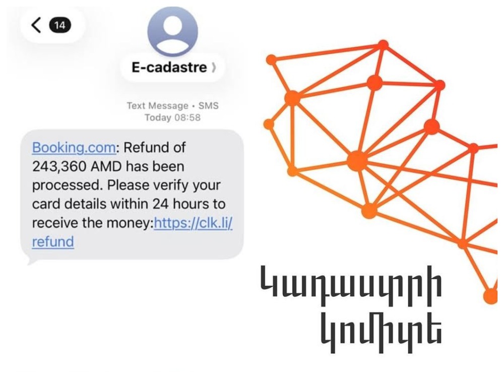 «Booking.com: Refund of 243,360 AMD has been processed. Please verify your card details within 24 hours to receive the money: <հղում>»
