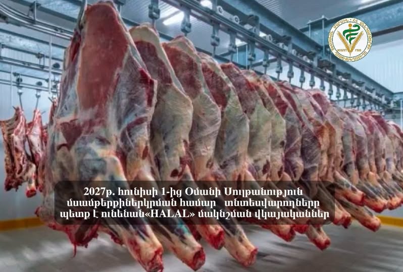 Հաշվի առնելով Հայաստանի Հանրապետության և Օմանի Սուլթանության միջև առևտրաշրջանառության խթանման կարևորությունը, ինչպես նաև օմանական կողմի ցուցաբերած հետաքրքրությունը հայկական գյուղատնտեսական ապրանքների, այդ թվում՝ մսամթերքի ներկրման նկատմամբ, իրազեկում ենք, որ 2027թ. հունիսի 1-ից մսամթերքի արտադրությամբ և արտահանմամբ զբաղվող հայաստանյան տնտեսվարողները Օմանի Սուլթանություն մսամթերքի ներկրման համար պետք է ունենան Օմանի սննդամթերքի անվտանգության և որակի կենտրոնի հավատարմագրած մարմինների կողմից տրված «HALAL» մակնշման վկայականներ: