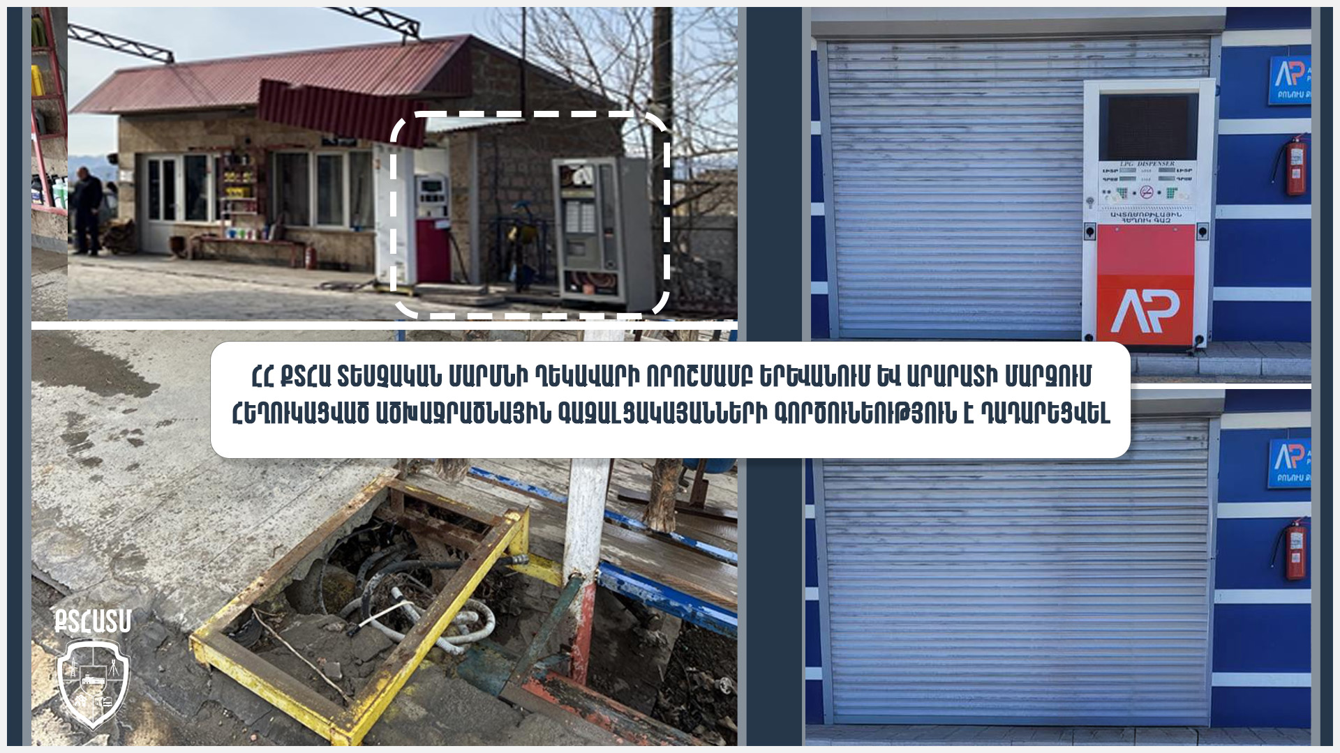 ՀՀ քաղաքաշինության, տեխնիկական և հրդեհային անվտանգության (ՔՏՀԱ) տեսչական մարմնի ղեկավարի որոշմամբ՝ Երևանում և Արարատի մարզում դադարեցվել է մի քանի լցակայանների գործունեությունը։ Պատճառը հրդեհային անվտանգության կանոնների կոպտագույն խախտումներն են, որոնք ուղղակի սպառնալիք են եղել քաղաքացիների կյանքի համար։ Տեսչական մարմնի հետևողական աշխատանքից հետո տնտեսավարողներն արդեն իսկ սկսել են վտանգավոր օբյեկտների ապամոնտաժումը։
