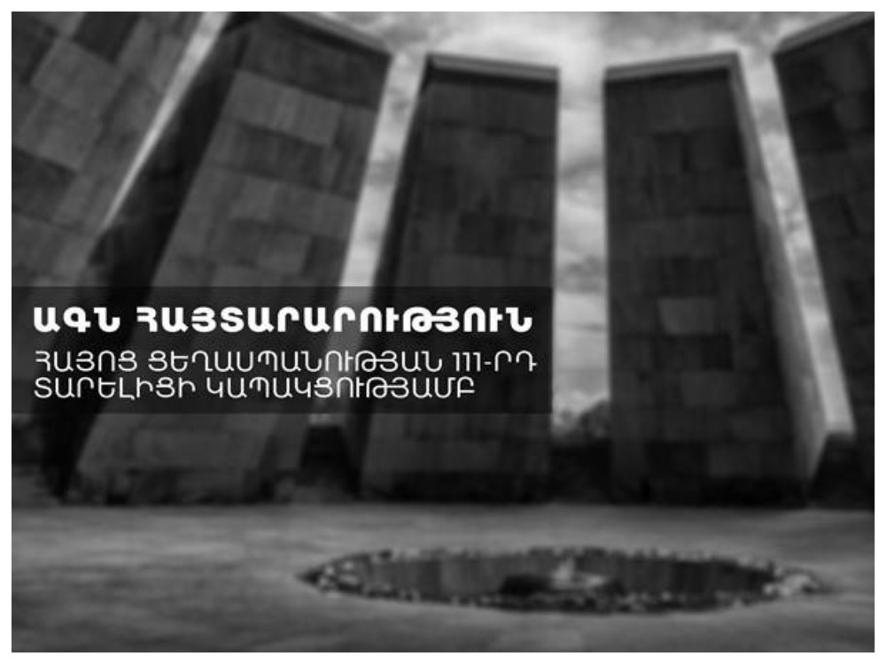 Հիշելով անցյալը և հարգանքի տուրք մատուցելով Հայոց ցեղասպանության անմեղ զոհերի հիշատակին` Հայաստանի Հանրապետությունն իր ինքնիշխան ապագան կառուցում է խաղաղության օրակարգով: Հարևան պետությունների միջև բարիդրացիական հարաբերությունների և իրական փոխգործակցության առկայությունն այն նվազագույն պայմանն է, որն անհրաժեշտ է Հարավային Կովկասում տևական խաղաղություն հաստատելու և մեր տարածաշրջանի բոլոր ժողովուրդների խաղաղ համակեցությունն ապահովելու համար: