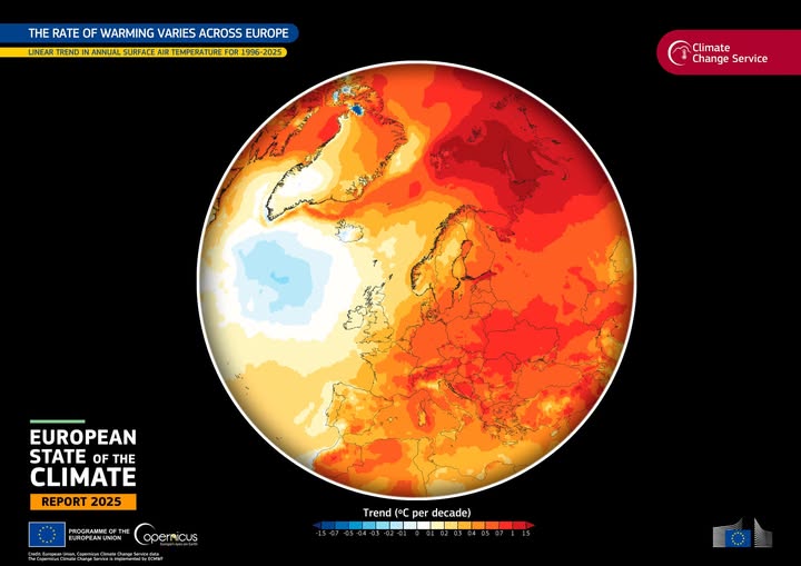 «Եվրոպայի կլիմայի վիճակի մասին 2025 թվականի զեկույցը» արդեն հրապարակված է, որը ցույց է տալիս, որ Եվրոպան, ինչպես աշխարհի շատ տարածաշրջաններ, ավելի ու ավելի է ենթարկվում կլիմայական լուրջ ազդեցությունների և հետևանքների։