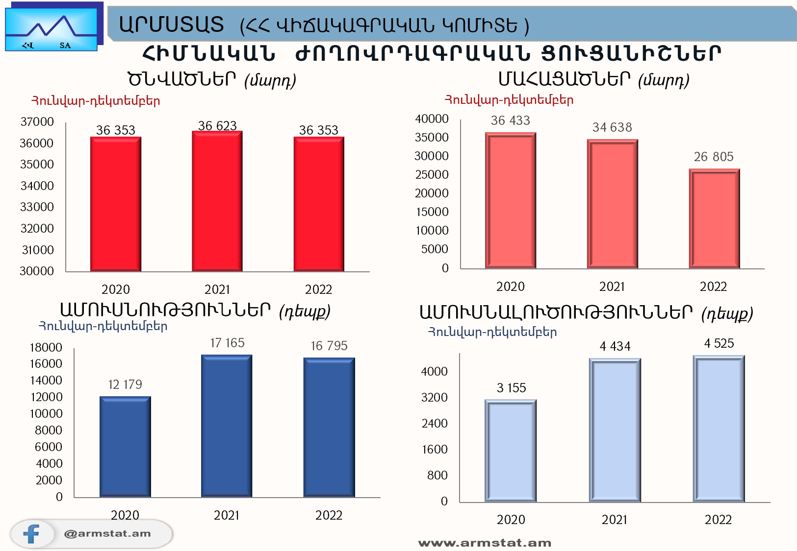 ՀՀ ազգային վիճակագրական կոմիտեն ամփոփել է 2022 թվականի ժողովրդագրական ցուցանիշները։